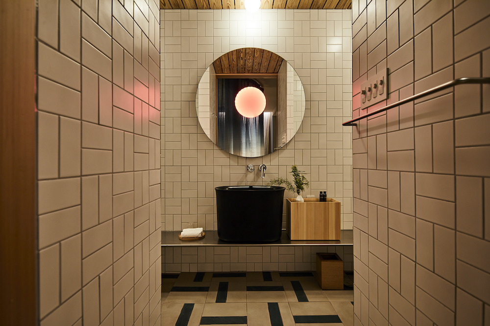 The overall concept subtly combines the classic Japanese architectural aesthetic and local materials with custom made Swedish minimalist sofas, seats and lamps. Speaking of combining: The hotel in Tokyo’s hip East is marked by an overarching design concept called “Aimai”, a Japanese word that can be translated as ‘vague’ or ‘unclear’. The idea behind that is to mix rooms and their functions or to let areas melt areas together in order that their character changes throughout the day.