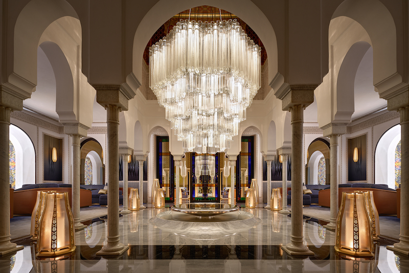 Already extensively renovated in 2020 under the main responsibility of Jouin Manku, the building was renovated again for its 100th birthday in 2023 according to the plans of the same office. Since then, the visit has been even more impressive. The reception, the alcoves, the Bar Majorelle, the Pavillon de la Piscine and the Bar de la Piscine have all been redesigned. In addition, two impressive installations by Czech glass and design manufacturer Lasvit in the Tea Room and the Italian restaurant pay tribute to traditional Moroccan architecture and bring a breath of fresh air to the luxurious location.
