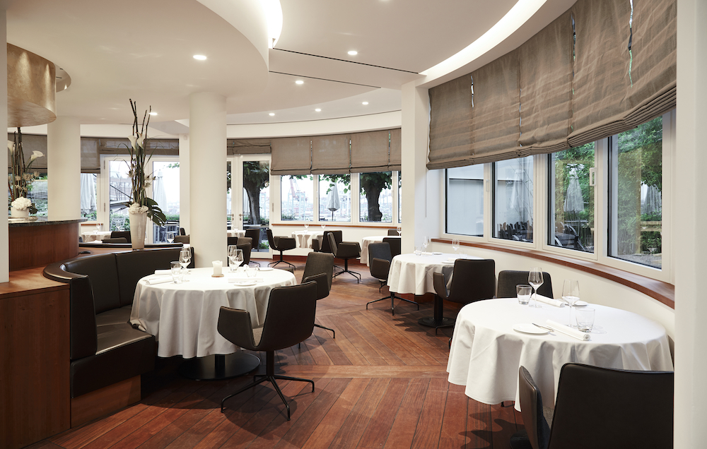 See the crisis as a chance – that is exactly what the owners of the Le Canard Nouveau and star architect Meinhard von Gerkan as well as director Annika Stoldt did after the restaurant had to be closed after a fire in June 2018. A year later the place opened again after a thorough renovation and with a new chef. The interior was developed by von Gerkan . The simple and elegant ambience celebrates the beauty of simplicity, just as the Hanseatic understatement requires. The guest rooms of the semi-circular building orient themselves as the bow of a ship to enable the panorama of the harbor.