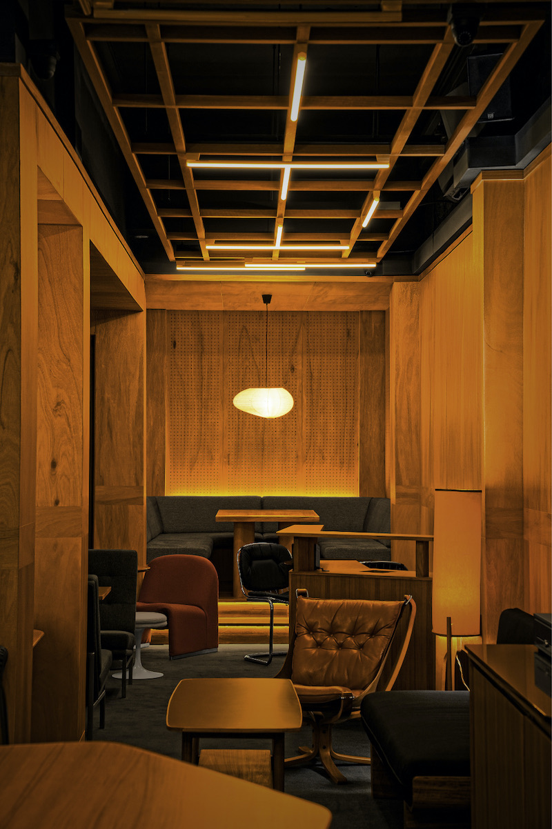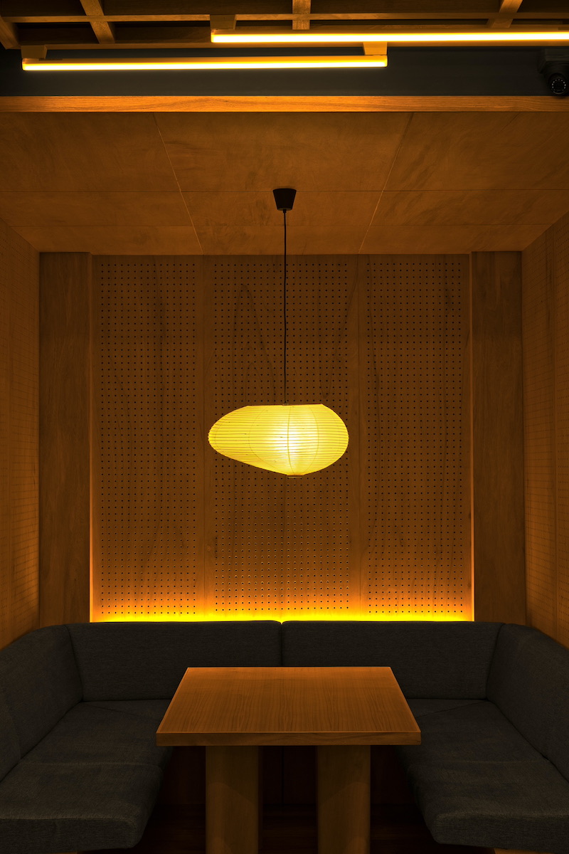 The intimate cocktail bar Live Twice refers to the modern Japan of mid 20th Century. For that, a tight and long bar room was extended with niches that in sum provide more coziness and intimacy.