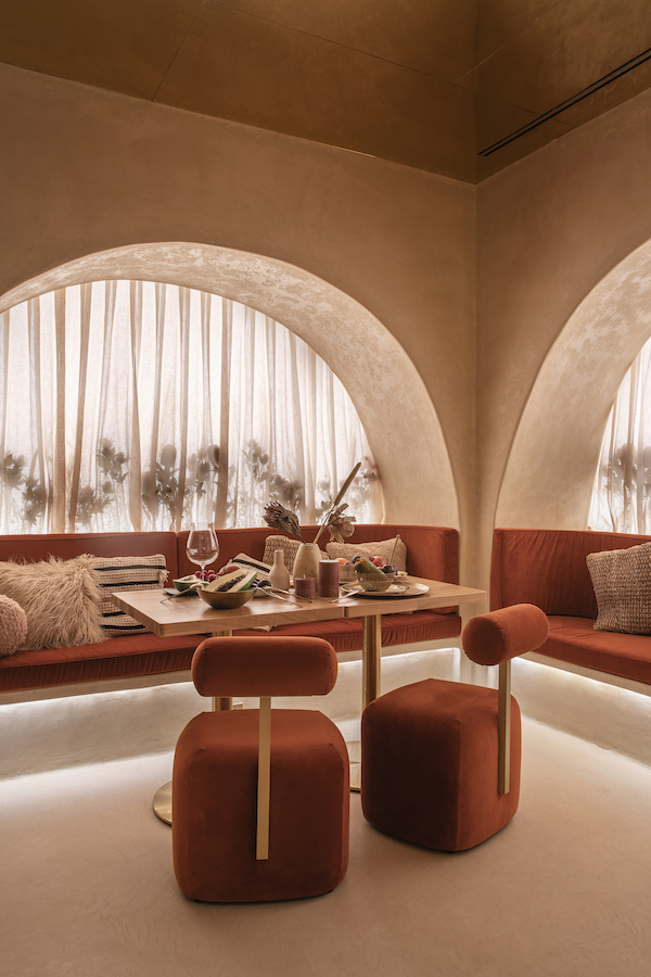 Lounge areas for dinner groups invite to intensive contact – and of course to enjoy the creative dishes. At the same time, this concept encourages people to look around the next corner. Windows designed in the style of Arabic architecture further accommodate this.