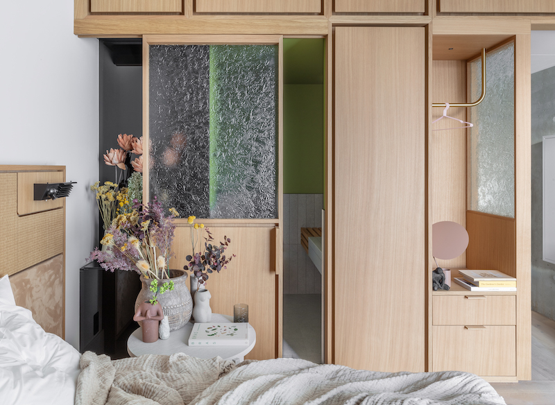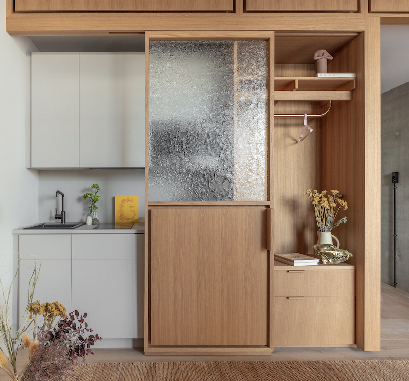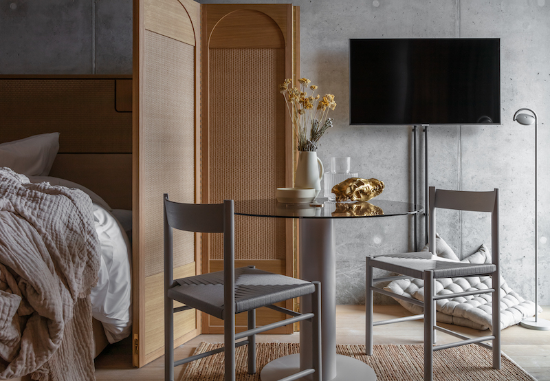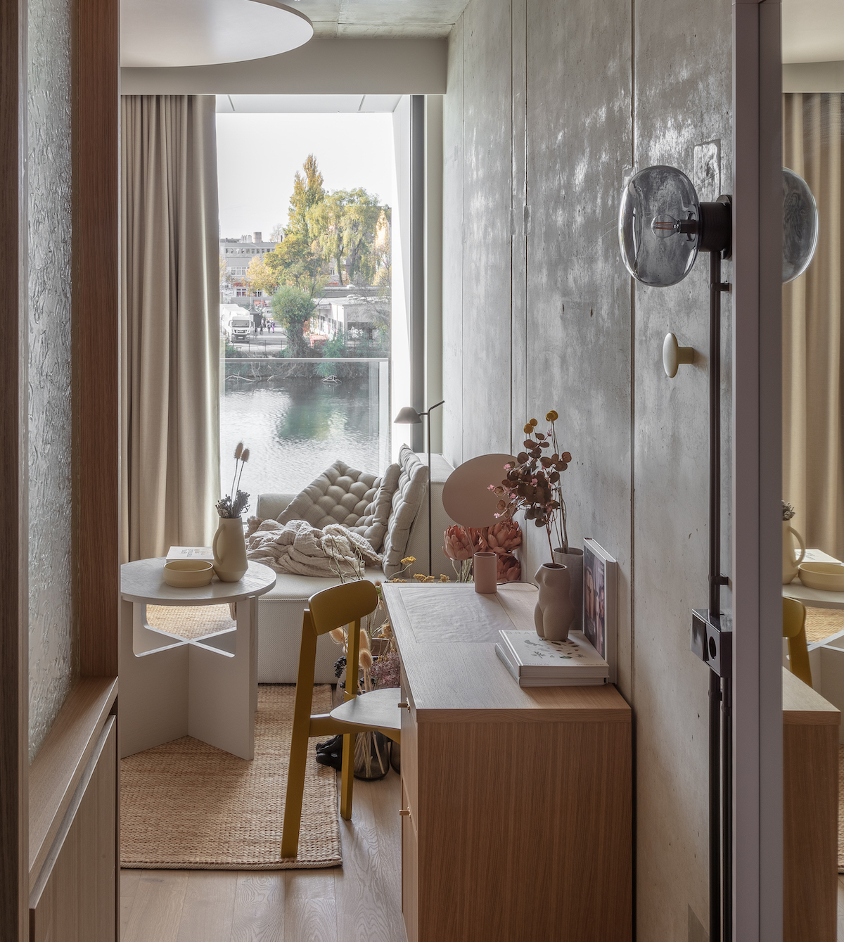 The Locke at East Side Gallery was designed by Matthew Grzywinski in clear reference to its immediate surroundings – the Berlin Wall, the Spree River and the adjacent parks. The apartments combine neutral tones and textures with raw concrete and playful color accents.