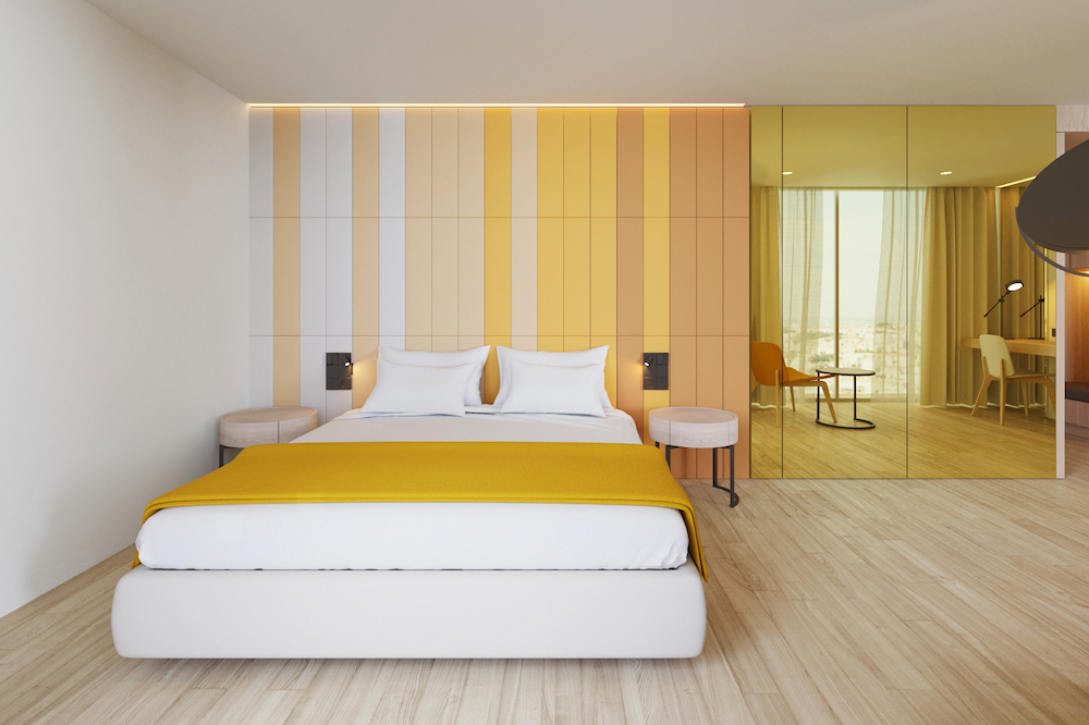 Because every visitor of the city knows: The Atlantic climate, the topography and the use of white limestone give Lisboa golden shades, which architect Frederico Valsassina in collaboration with the P-06 Atelier (Nuno Gusmão) and the design studio LemonVariance captured for the the public areas.