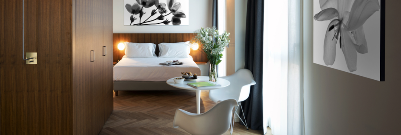 The Gucci-Hub, the new headquarter of the traditional Italian label, is located right across from the hotel. The roof structure of the former airplane plant was mirrored in the hotel M-89.