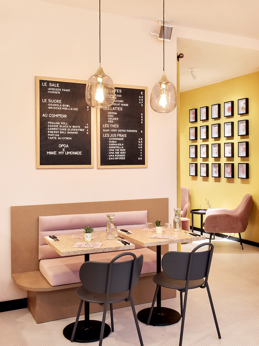 Blogger Lisa Gachet opened the matching store to her virtual happy place Make My Lemonade on the hip Canal Saint-Martin. Thought of as joint venture between RAAM Architecture and Fleur Delesalle, it also hosts café, workshop, galery and working area. The different areas are marked by colors – walls in millennial pink, strong ocher and radiant lemon yellow await selfie photographers and let the real and virtual worlds of Make My Lemonade melt.