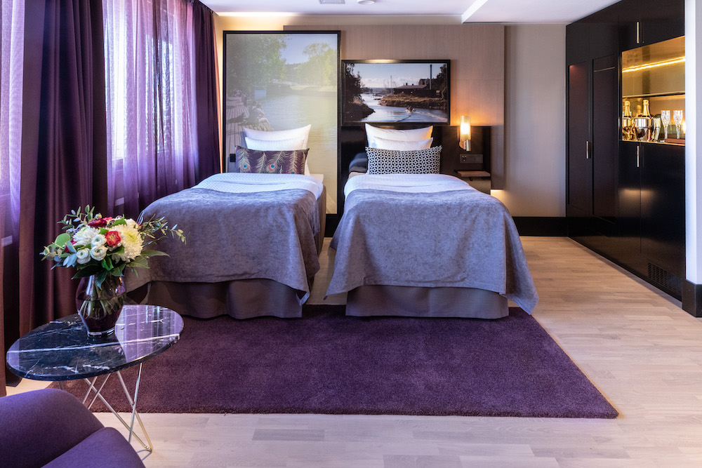 The Hotel caters to different guest requirements with luxurious suites with their own sauna or especially shielded rooms for undisturbed sleep. It is located in walking distance to the central station and convinces with an urban ambience and a Finnish touch. The Scandinavian touch for aesthetics cannot only be felt in the rooms: In the restaurant, brass and gold shades, dark green and reddish brown leather mark the color scheme. Noble metal surfaces with columns covered in fine tiles and glass bead lamps create a dialog with the wooden floors and round seating islands for a noble and cozy atmosphere. Velvet chairs and sofas in the hotel bar in dark red and old rose complement the color scheme.