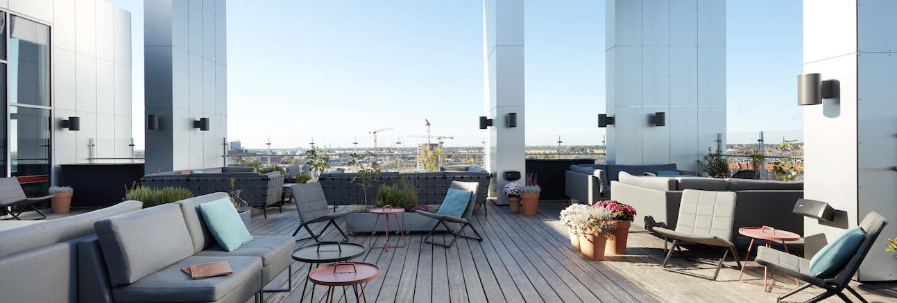 Attention! It gets even better when the weather is good because then you can enjoy view and steaks on comfy outdoor chairs by Cane-line on the roof terrace.