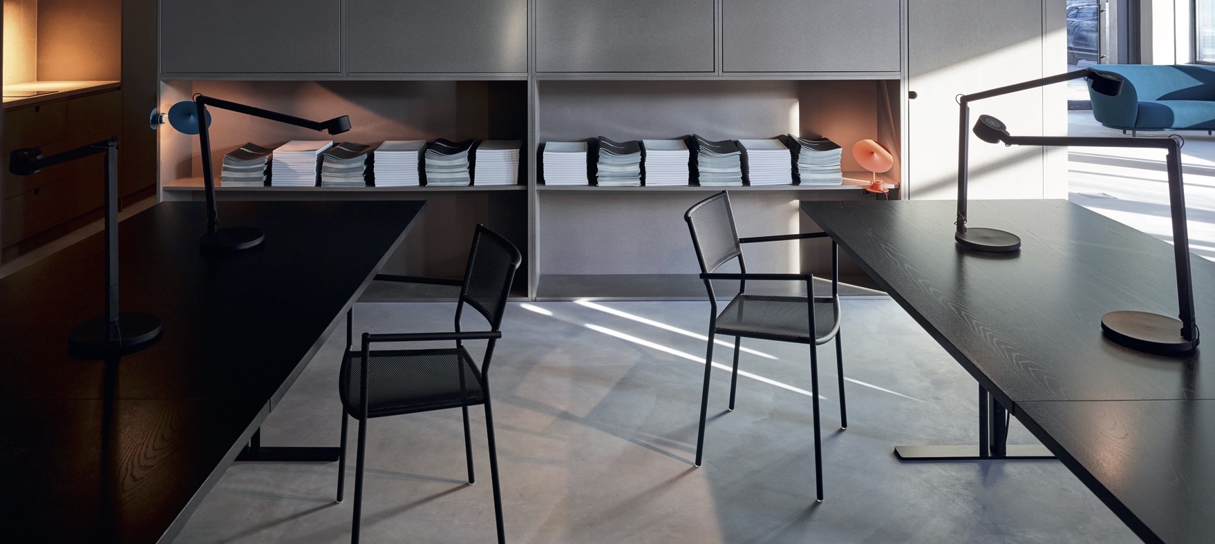 On the ground floor, Massproduction’s elegant furniture as well as Wästberg’s contemporary lamps can be admired. The implementing interior designers of Atelier Guise interpreted this showroom in a clean manner void of any superfluous decoration, marked by functional, constructive, practicable clarity.