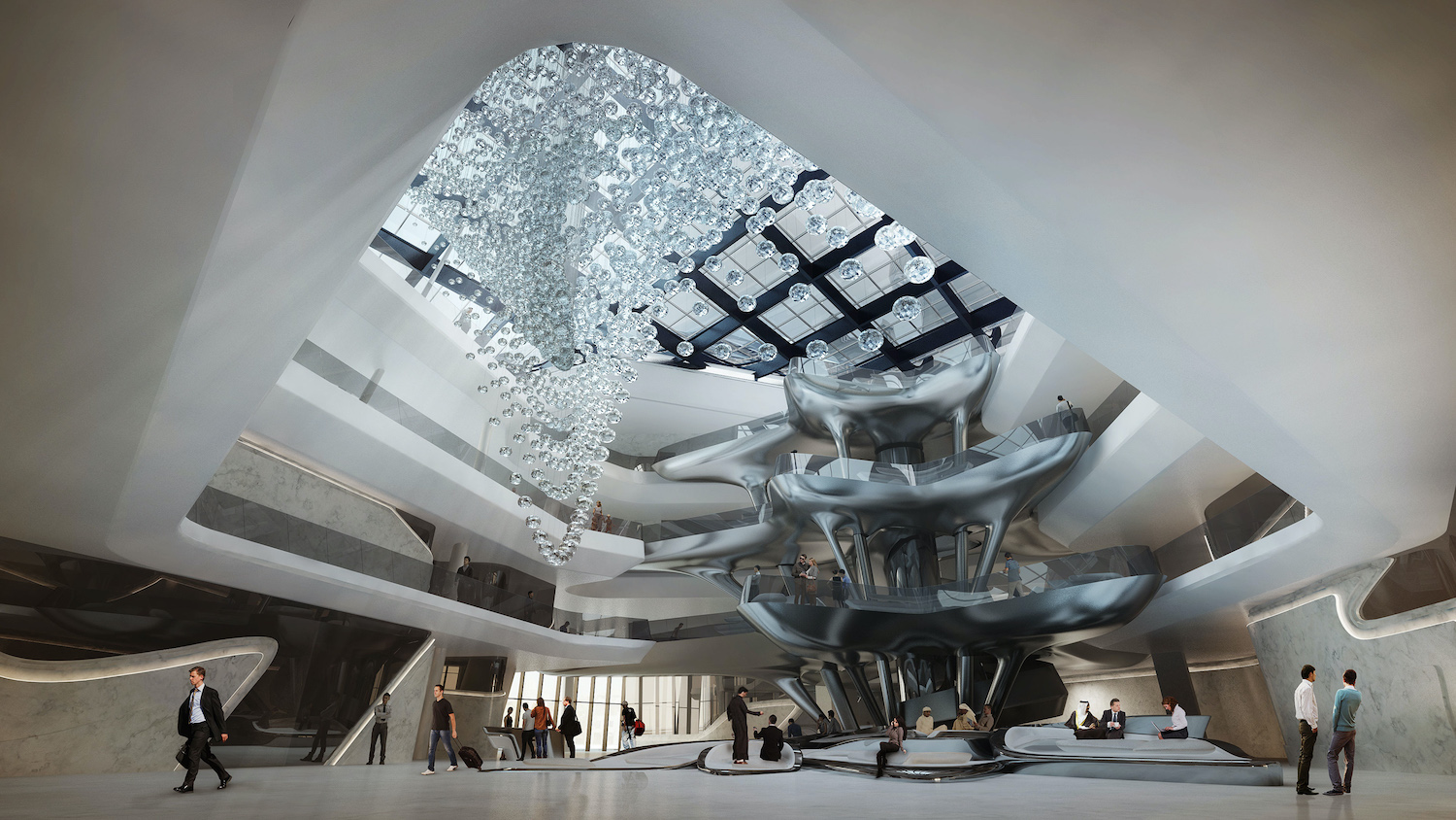 The building is a typical example for Hadid’s flowing style: The two towers are not just connected with each other, they melt together. The rooms and suites also carry the architect’s unique signature. Her design language creates an organic balance between massive and light, opaque and transparent  in interior and exterior.