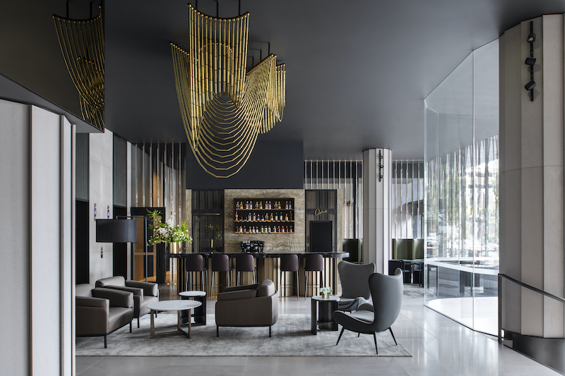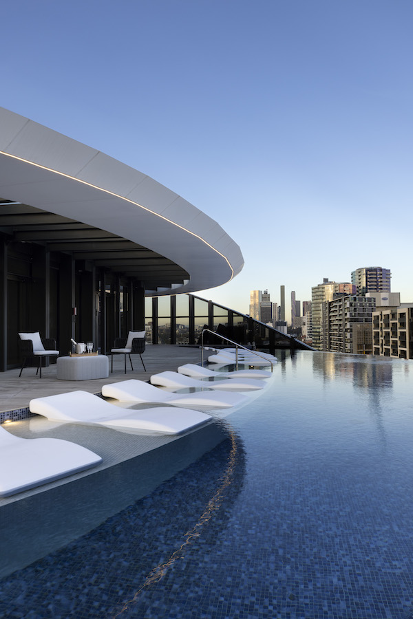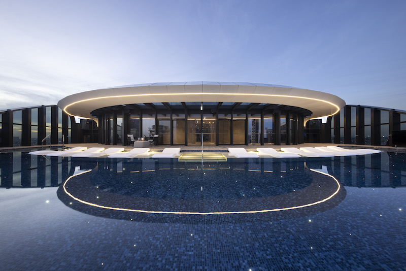 The 17-storey twin towers have an infinity pool on the roof and a restaurant on the first floor. Echoing the contours of yachts in the city’s harbor, DKO has designed a building with graceful curves.