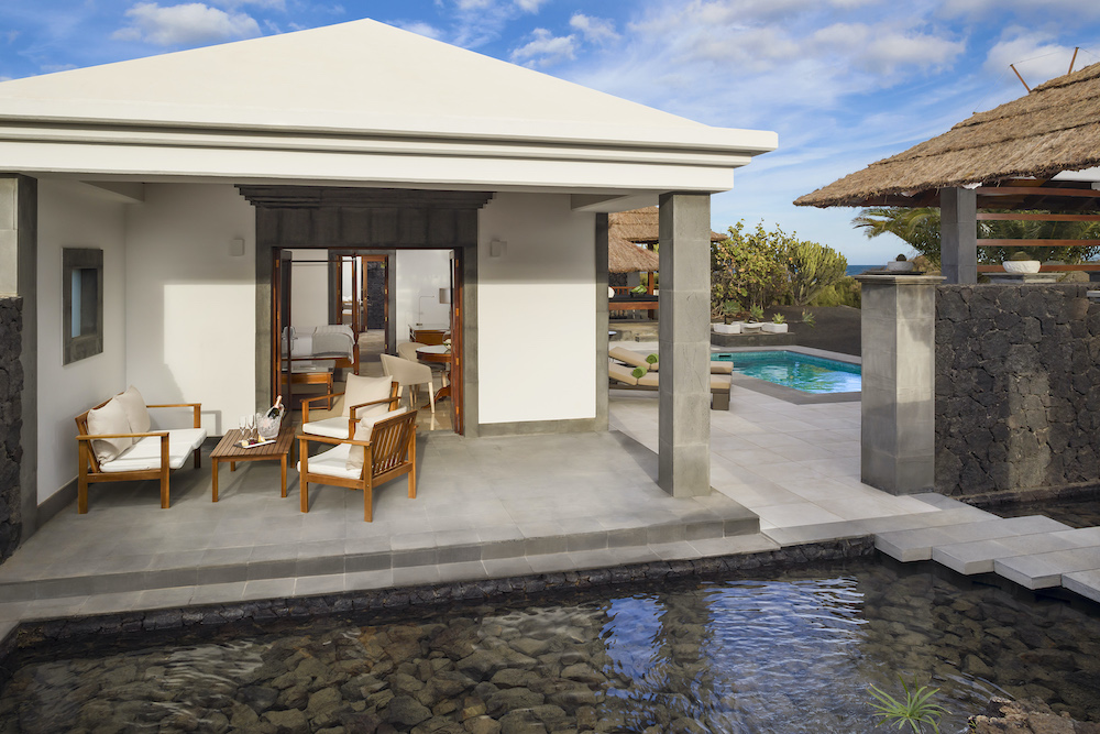 Two stars of the Spanish design were responsible for the design of the hotel: Madrid’s architect Fernando Higueras and artist César Manrique from Lanzarote. Higueras’ staircase-like building design convinces visually but also assures that all rooms are flooded with natural light.  And the garden and pool areas designed by Manrique are an impressive homage to the nature of the volcano island — and already received many awards.