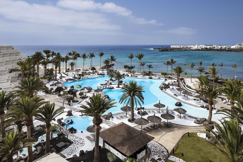 With its lagoon-like pool landscapes and its lush gardens, the Meliá Salinas is something like Lanzarote’s green oasis. The five-star hotel is directly located by the Atlantic between two natural sand beaches and offers guests exquisitely furnished rooms that were completely updated in 2018.