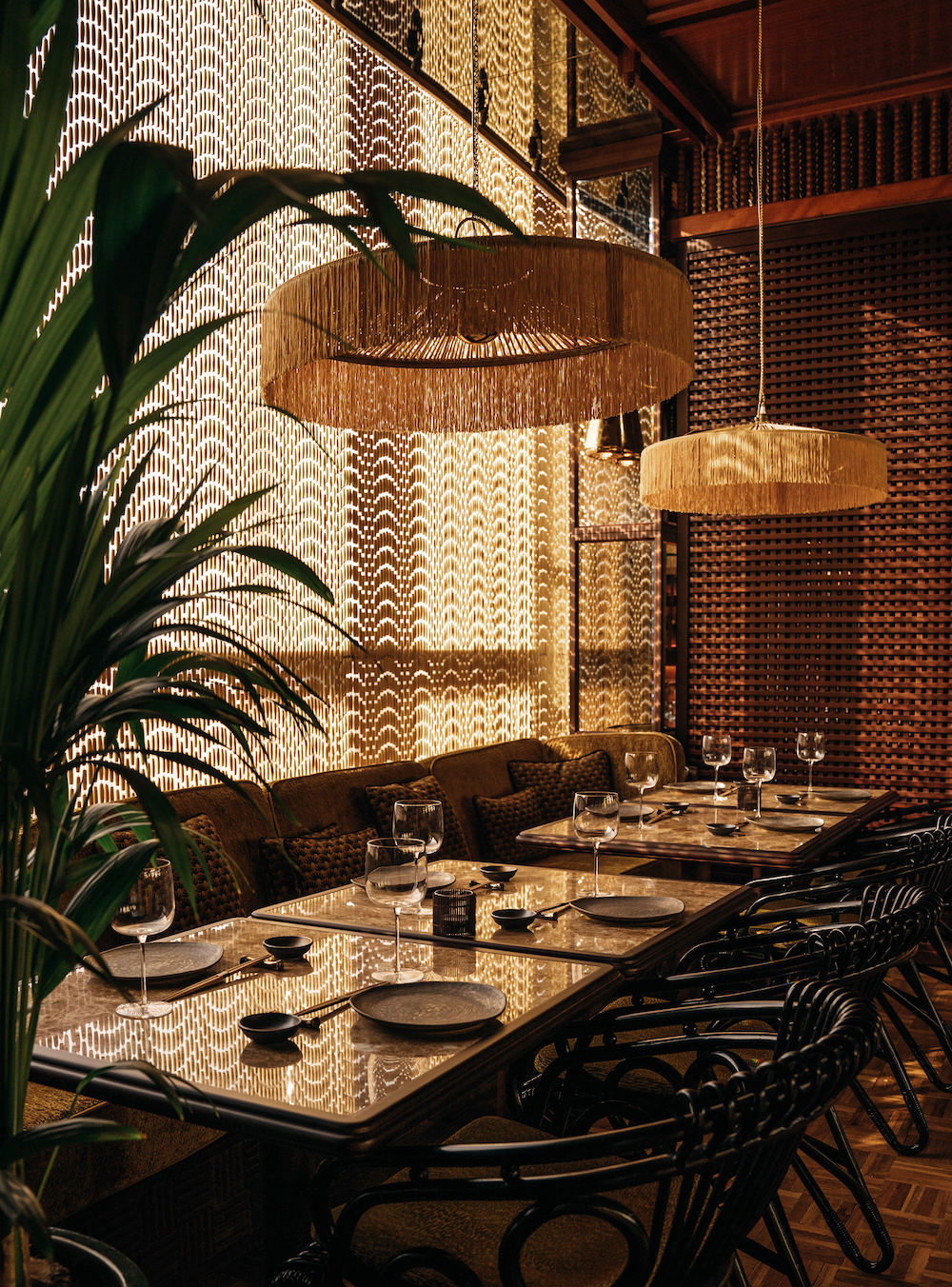 London’s design studio Pirajean Lees came up with a very special concept for the Mimi Kakushi in downtown Dubai: Starting from the Japan of the 20s, when modern art and Western fashion entered the country and challenged traditional values, the interior design is inspired by the personality of Sessue Hayakawa. The heart-throb, who was the first Asian actor to become a Hollywood star, was known for his extravagant parties, his gold-plated cars and his castle-like mansion.