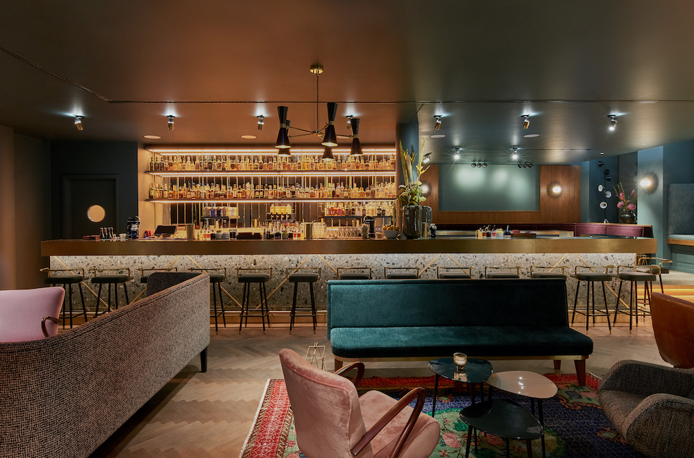 Guests have the chance to mingle with locals while having a drink in the Amano Bar, a hidden jewel with mid-century furniture