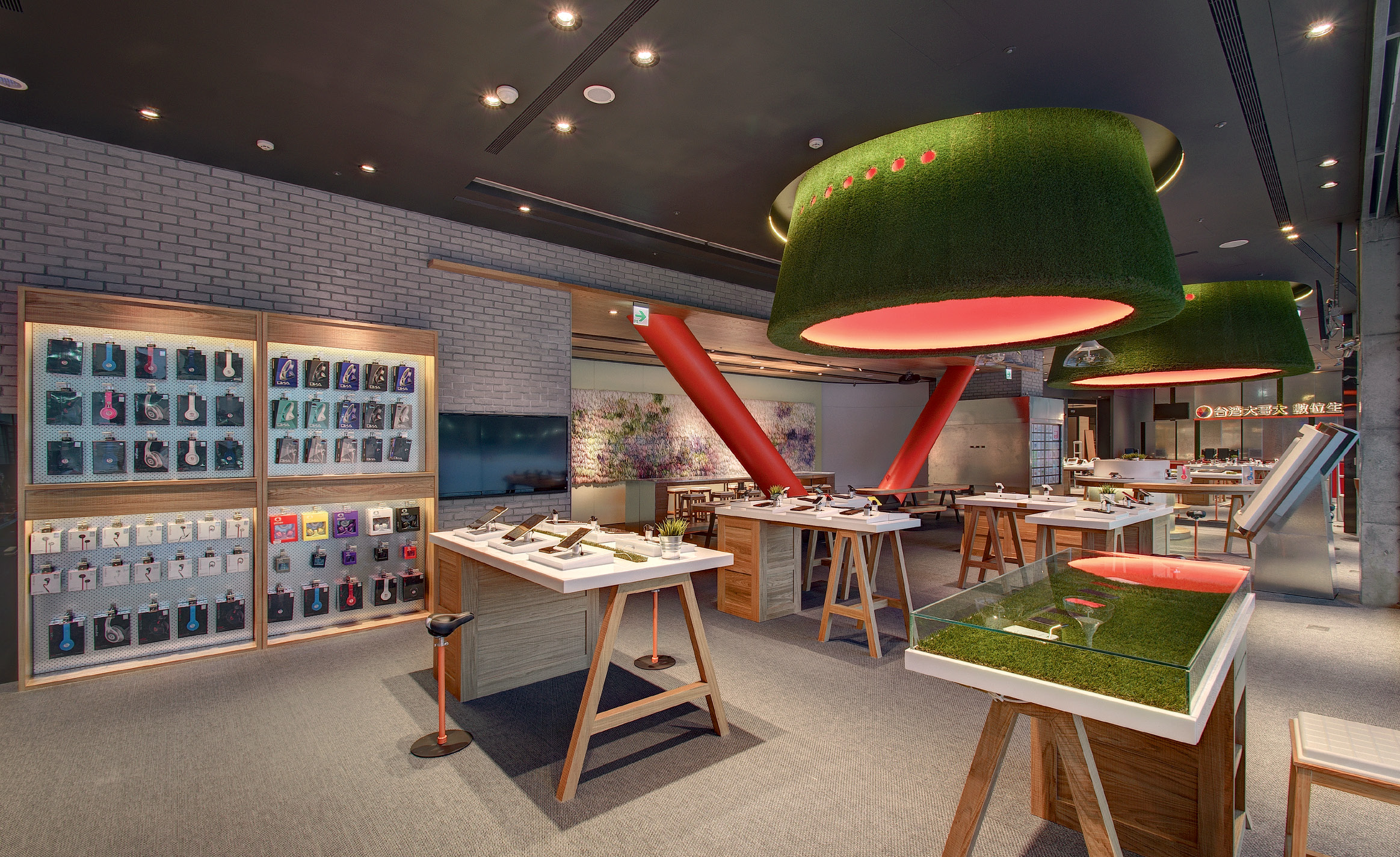 Taiwan’s leading mobile operator Taiwan Mobile Co opened a digital life hall that allows consumers to explore new products. The architects created an open space with considertion of the areas communication and interaction. Warm-colored veneers introduce an eco touch, the dominating color is orange.