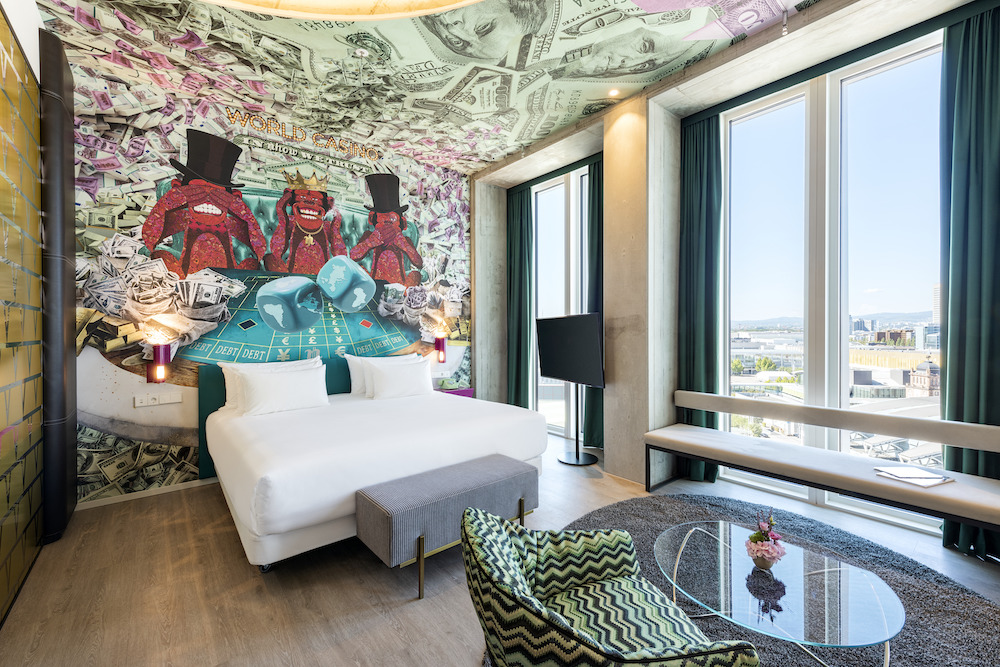 Frankfurt am Main is an important European financial center. With the motto “The Art of Money”, the Nhow Hotel takes up the theme of money in numerous artistic and subtly ironic ways.