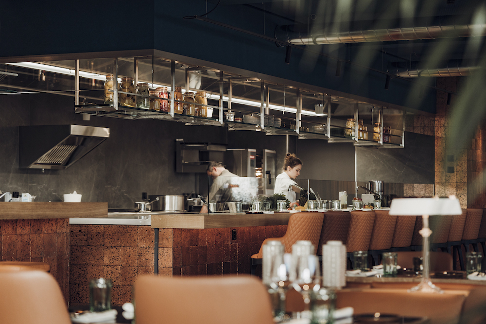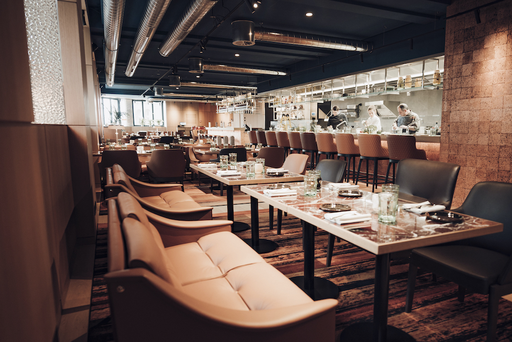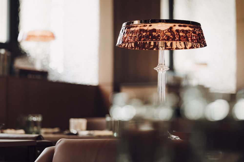 The Noumi Grill & Bar is located in the basement, yet French architect Architekt Kristian Gavoille brings in a lot of light with creative ideas such as mirrored window sills.