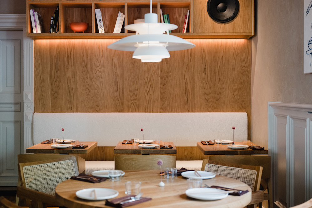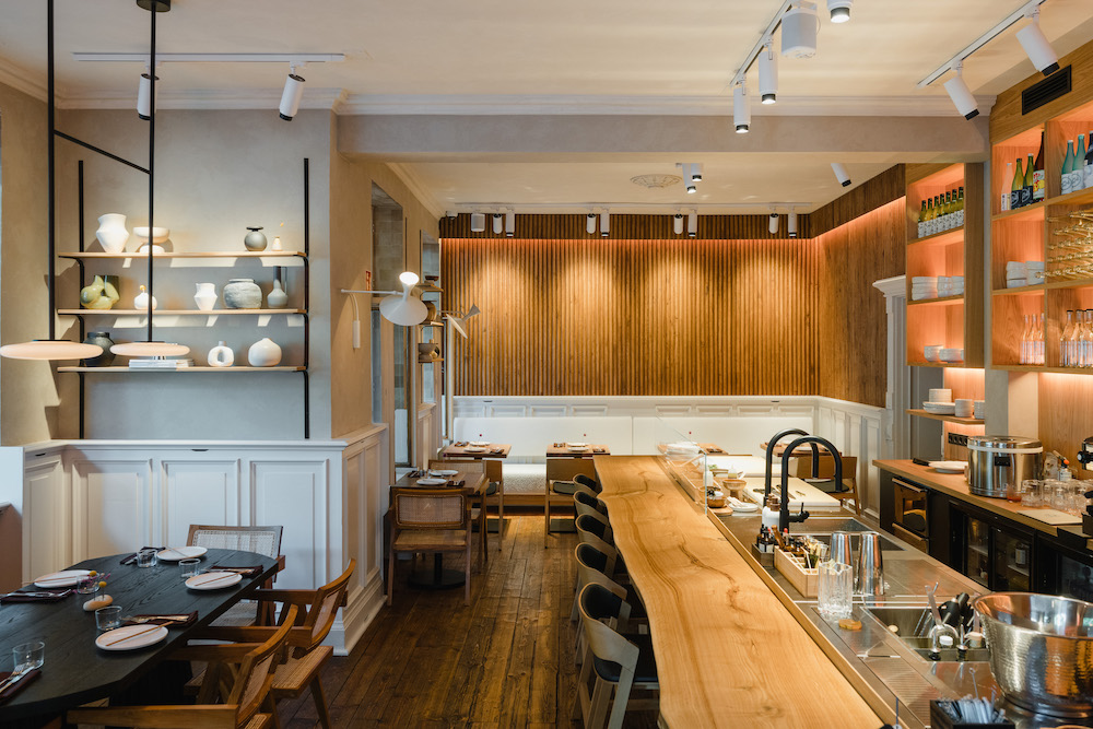 The interior is a thoroughly clean room with massive oak paneling, warm colors, minimalist decorations and Bauhaus-style furniture. The oak bar is a special eye-catcher: On the left, bar chef Vasily Sapunkov and his team mix cocktails, on the right, sushi chef Ruslan Kim invites guests to take a seat at the raw bar for some nigiri, sashimi, carpaccio or tartare.