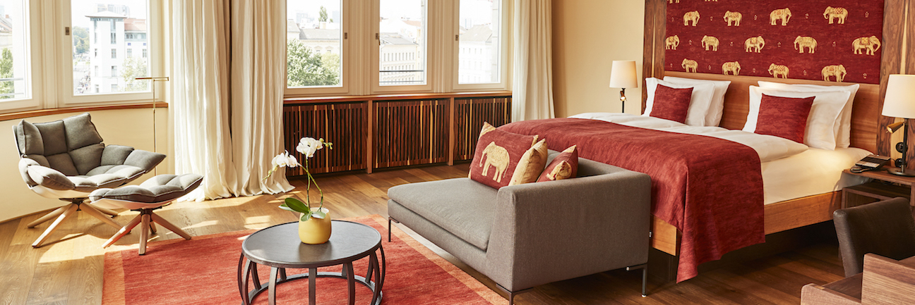 The interior design assures a warm and cozy atmosphere. Golden elephants on red fabric alight all over the hotel and set an oriental accent.