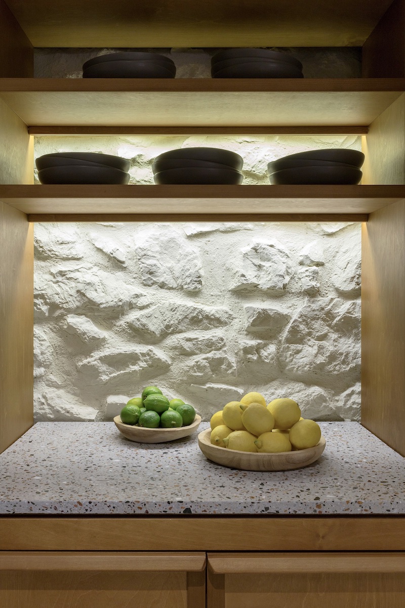 The references to Mediterranean life, meaning narrow alleys and romantic corners, turn the ground floor of the Ovio into an Italian patio full of balconies and plants that create a seamless transition between interior and exterior. Advancing further, one discovers a wooden construction for even more plants that span across ceiling and walls and add life to the room.