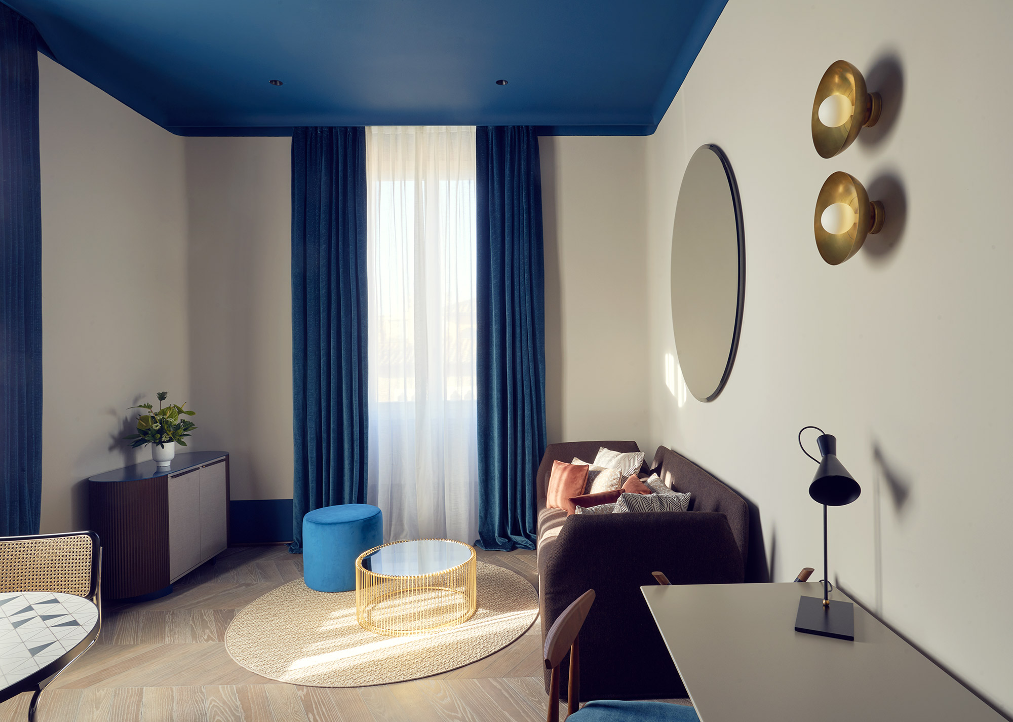In 27 design suites and six rooms, guests can enjoy an exclusive stay that combines the intimacy of a living room in a private residence with the comfort of hotel services such as restaurant, gym and cinema