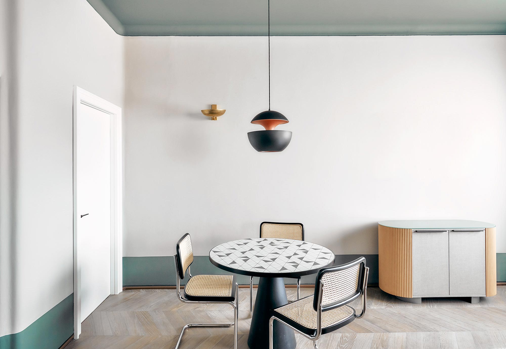 Milan-based Garibaldi Architects was hired for the current renovation, including new interior design. The prestigious historical context was to be enhanced while creating a cozy space. Contemporary art objects meet original, old and custom-made design objects here.