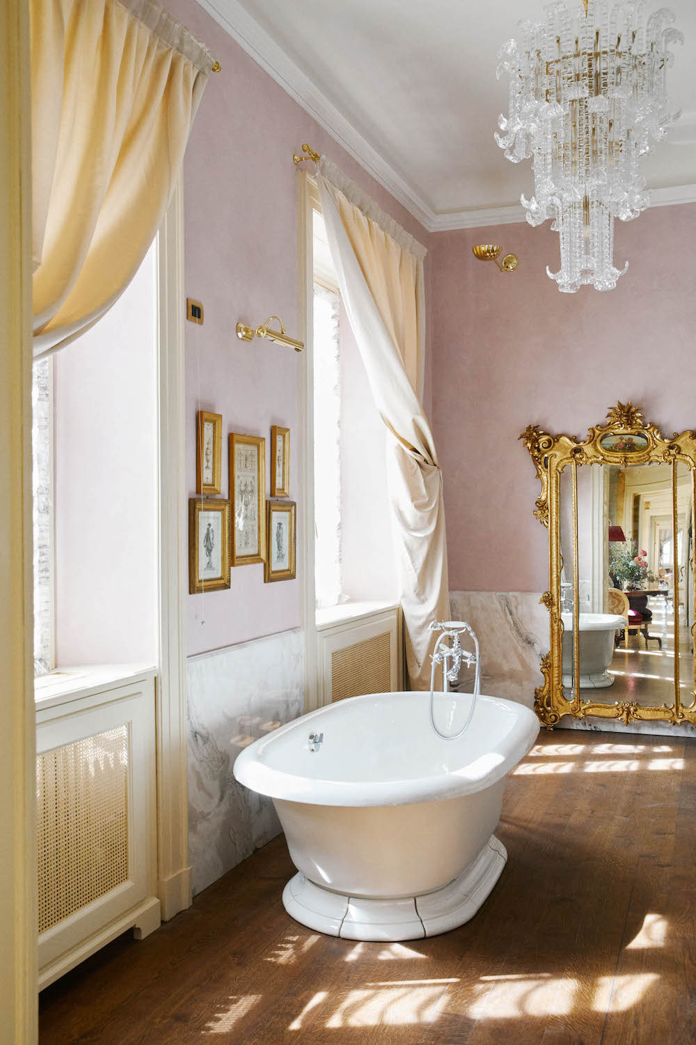 The restoration and decoration works were done by local craftsmen and small, traditional Italian workshops. Barovier & Toso, a Venetian company from the 17th Century, known for their impressive Murano glass chandeliers, was responsible for the lighting. Just as impressive: More than 20 kinds of Italian marble was sourced from stone pits in Verona and Carrara to decorate the baths – among them, the unique Breccia Pontificia that is also used in the Vatican and that looks more like art than like stone.