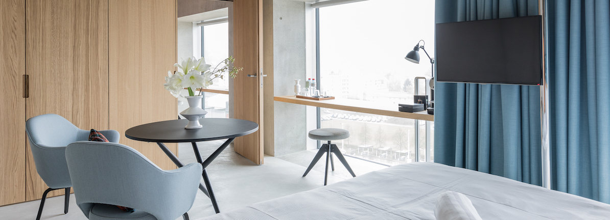 Something is happening in Zurich’s luxury hotel segment. The best example for the fresh wind: the Placid. With its light oak wood, floor-to-ceiling windows, powder blue fabrics and tiles, the hotel appears much lighter than the heavy traditional hotels in the city.