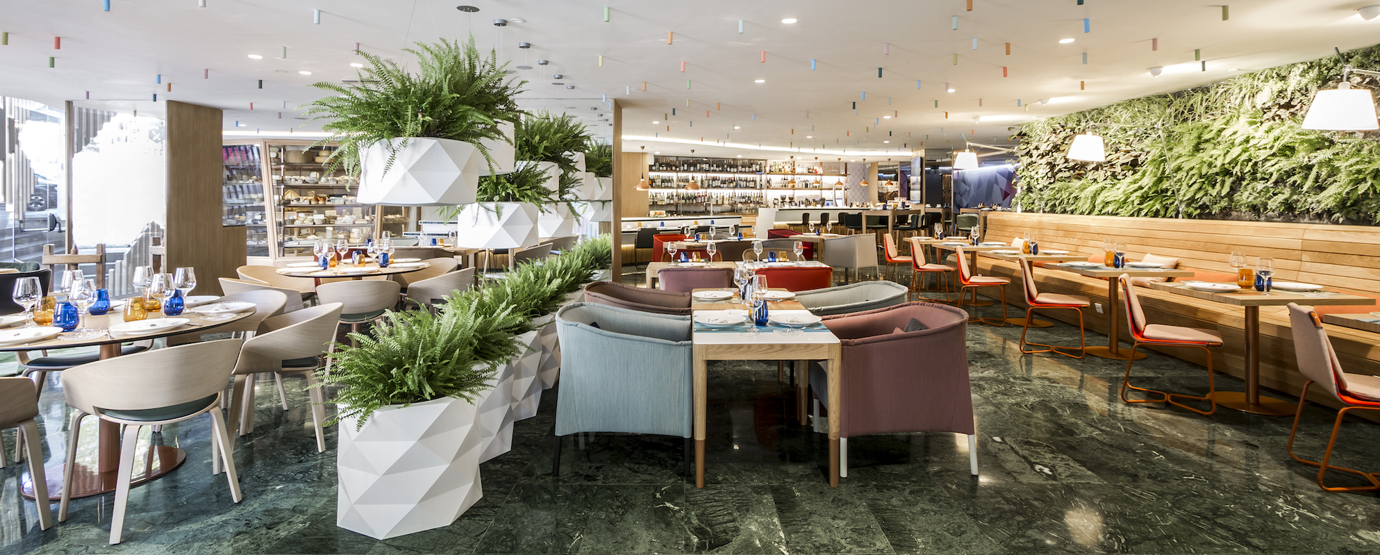 Aesthetically, the premise in the Hotel Meliá Sarriá also features a unique maturity. The design studio estudiHac from Valencia used mainly noble materials such as marble, oak and copper as well as a fine selection of colorful fabrics for the interior. Just like a fine cheese, an interior can also gain more and more character with time – thanks to its well aging components.