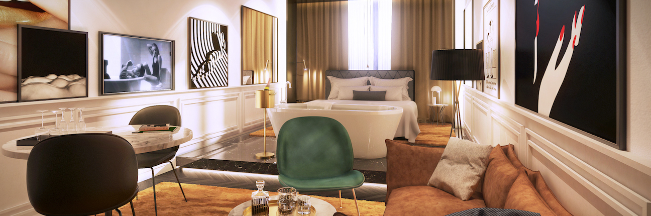 The  Roomers is member of the “Autograph Collection” hotels hence the classy place offers its guests all imaginable comfort: from 24/7 in-room dining service to the 600 square meter large spa area, all yearnings for luxury are fulfilled. And the 281 rooms and suites feel rather exclusive thanks to the extravagant interior design by Amsterdam’s “concrete”architects.