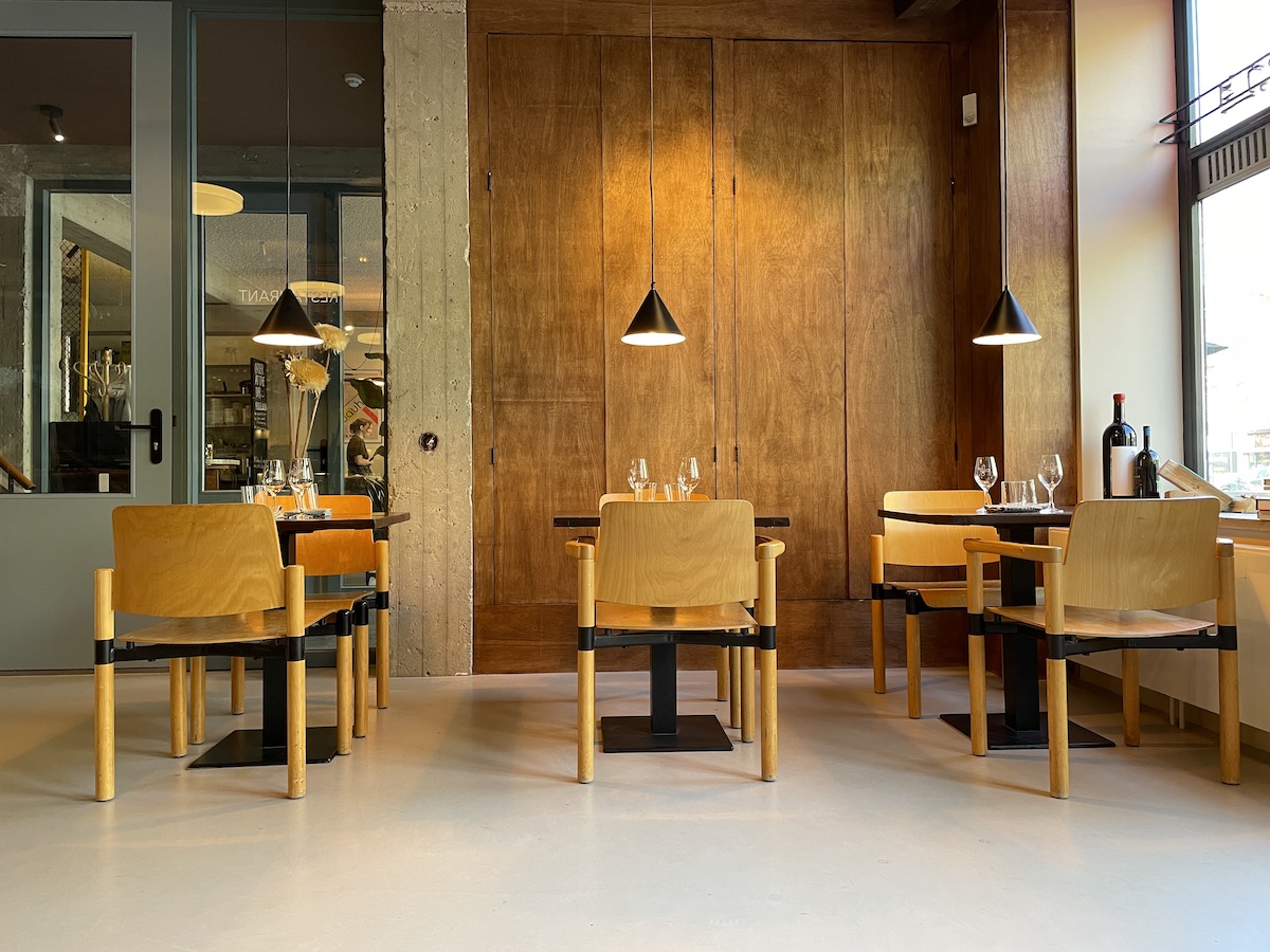 They did the design themselves, using their favorite restaurants in Europe as inspiration. The chairs, for example, come from a parliament building, the lamps from a university.