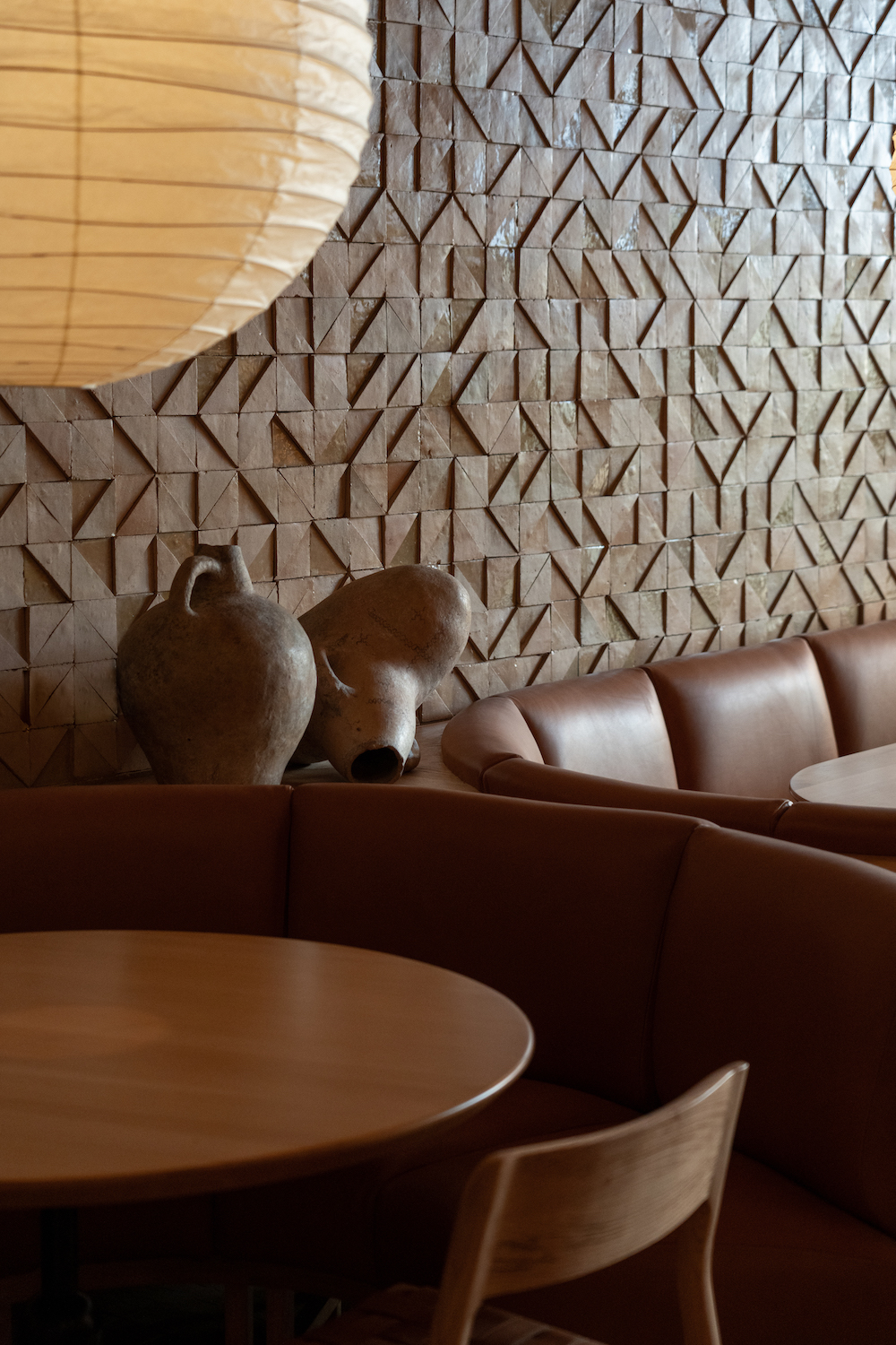 The interior design by Studio KO is just as traditional – even though a touch of modernity was also added. Overall, the designers created a warm, social place, in which handcrafted details, natural materials as well as typical colors and patterns are interpreted freely.