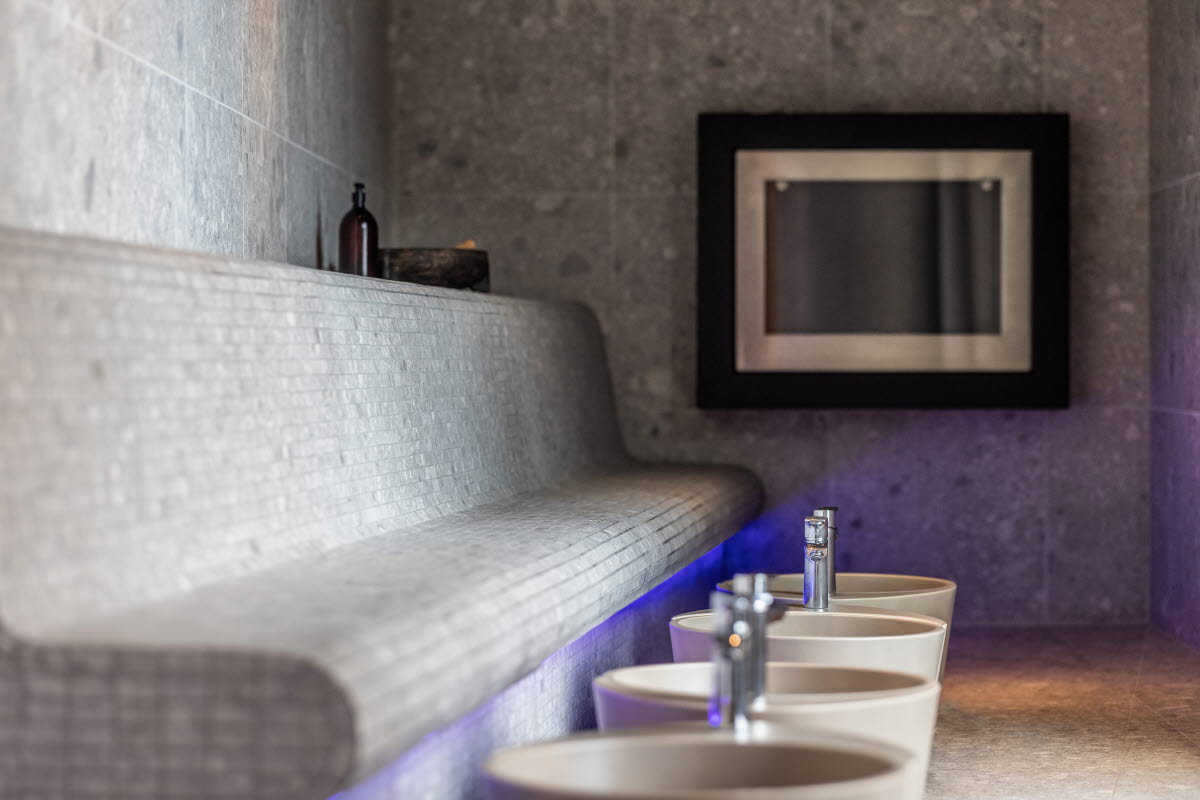 The extensively lit wall in the Skybar Seanery is made of recycled plastic bottles, and the carpets in the lobby were fishing nets in their former life.