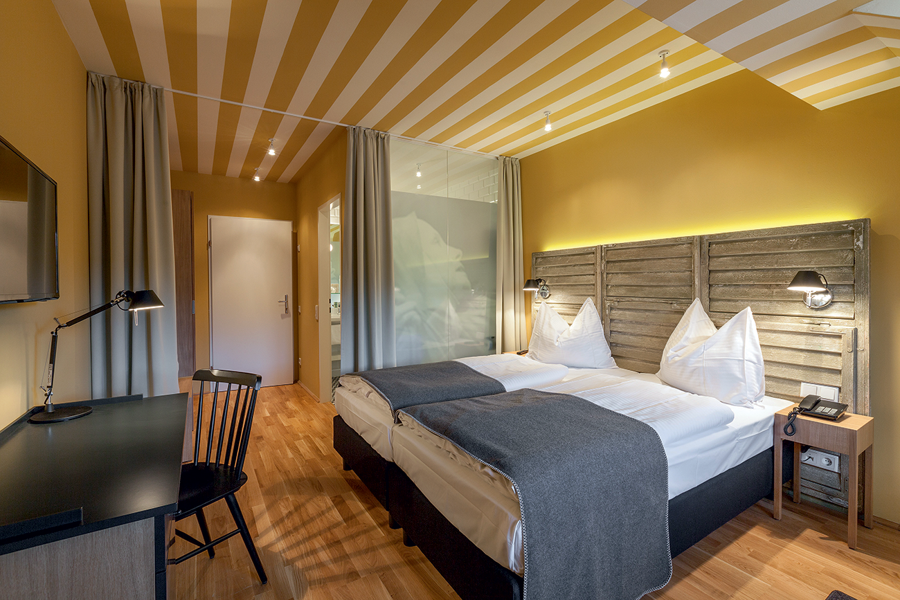 The castle is internationally known as the set for ‘The Sound of Music’ and has been reopened as a hotel. The main castle kept its baroque character. TFally Plus Partner architects turned the Meierhof into a contemporary, colorful boutique hotel with 55 rooms, a café and two townhouses.
