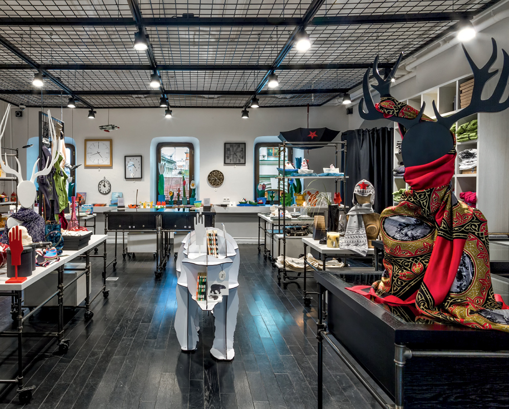 This concept store is located in the legendary department store GUM and specializes on unusual gifts and souverniers. Besides that, it also sells art-editions of ceramics and table ware. The shop aims to integrate contemporary art into daily life. The building, which has been renovated by architect Oleg Zarechensky, is already impressive. The former art gallery is now integrated into the store’s products. Everything you see can be bought, even the wall decoration.