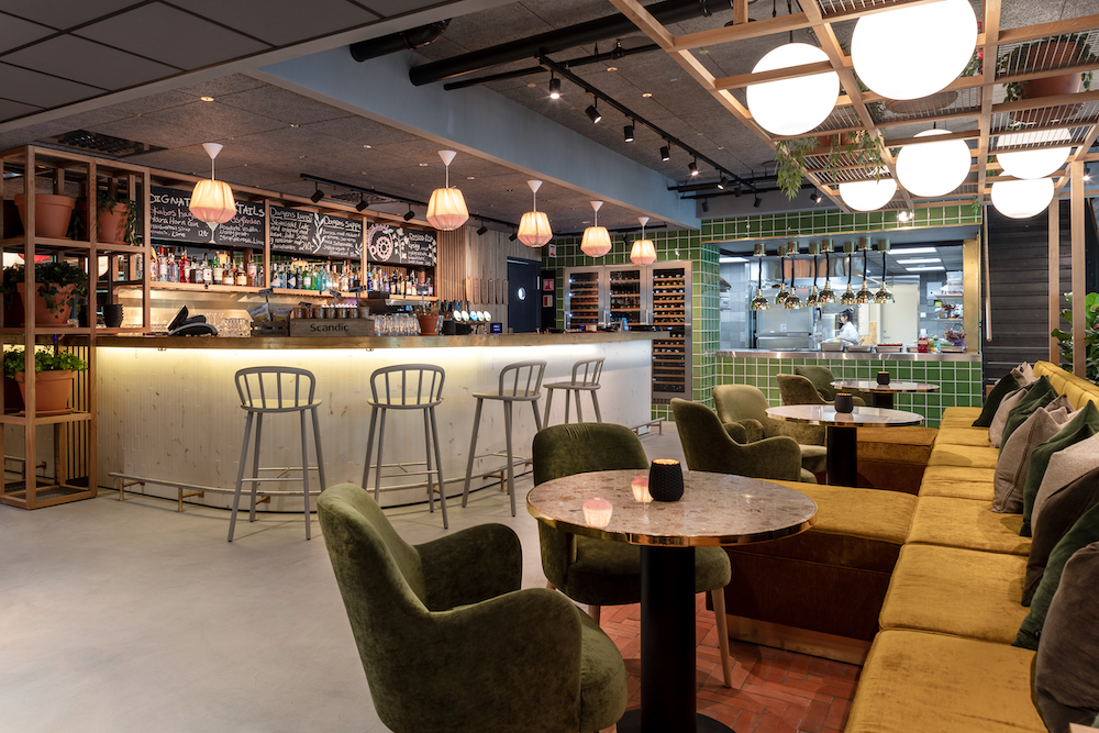 Skabos Hage is a ground floor restaurant in the renovated and extended hotel Scandic Sjølyst. The interior mirrors the band width of the Skøyen district’s history that since its founding was a nature idyll as well as one of Oslo’s industrial center.
