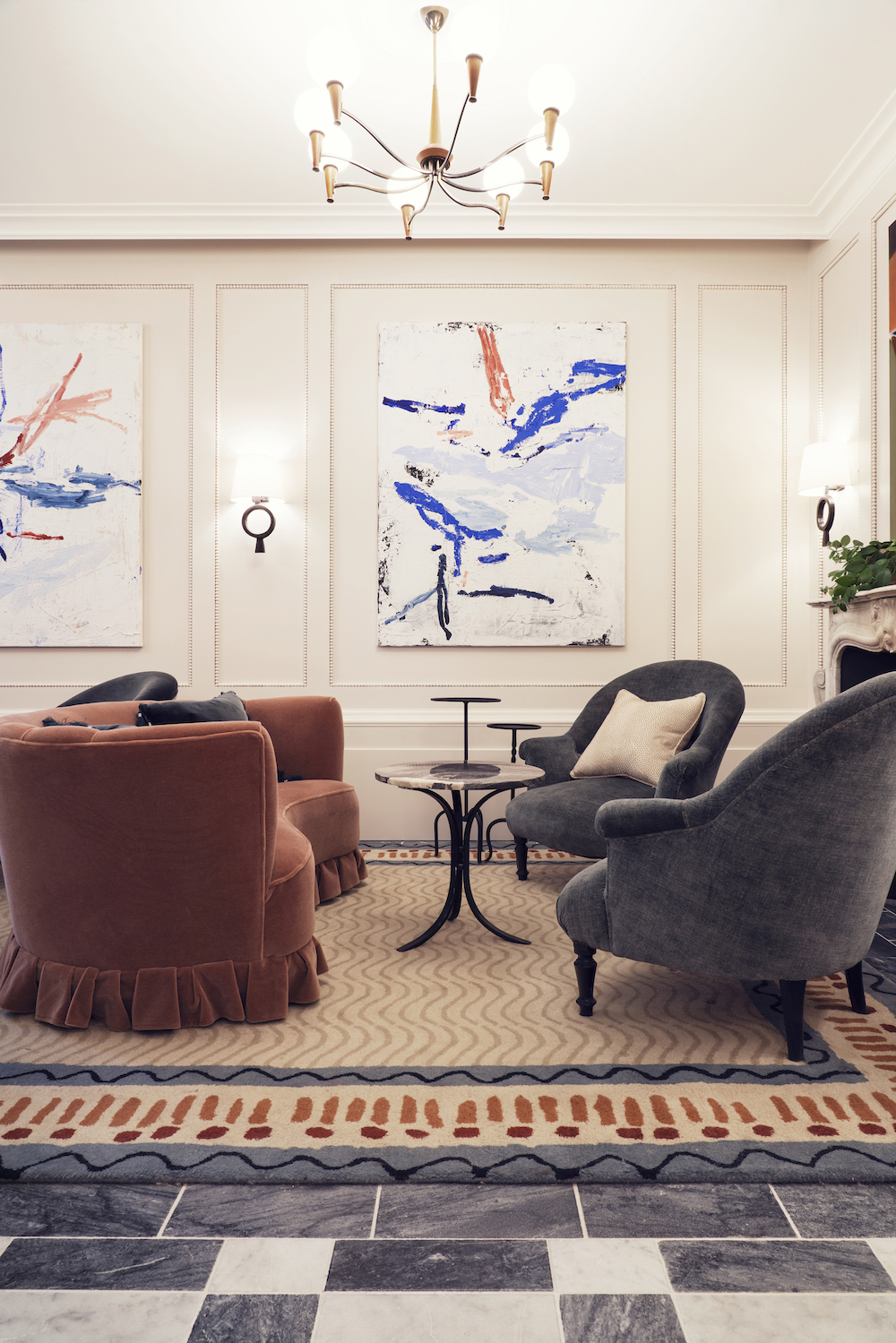 The Soho House Paris is located in the middle of the legendary amusement area Pigalle and in an impressive 19th Century building. Many important elements of the historic building were preserved and restored, among them the central staircase and the black-and-white marble floor on the ground floor.
