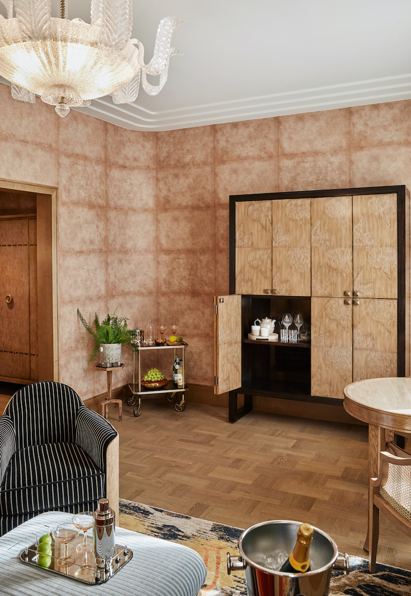 Aesthetically, historic details and contemporary design, Nordic functionalism and lush Art Deco skillfully meet to create a nostalgic, occasionally romantic journey through time with all the comforts of the 21st century. The colors and patterns in the rooms, restaurants, and lobby are inspired by Norwegian artist Gerhard Munthe, the chandeliers by those in the city’s town hall, and the bedheads impress with refined marquetry.