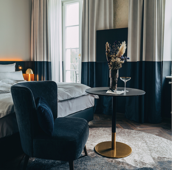 The 1840 building was carefully overhauled and reopened in 2023. The patina points to a long history without giving away any details. Each room tells anecdotes, for example the junior suites with their different panoramic views. The mysterious stories of earlier guests become a new narrative here – whether on the comfortable armchair, in the partly free-standing bathtub, or in the shower.