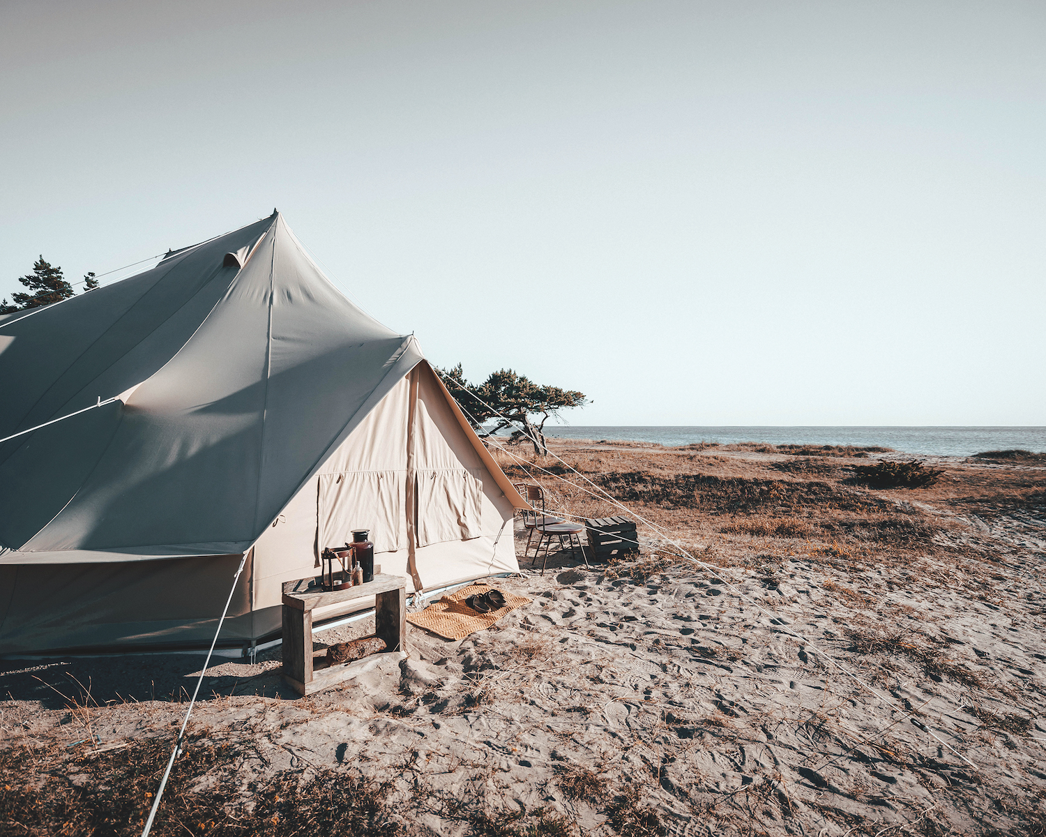 Surfer types also like it comfortable – and hence guests of this tent hotel in real, hand-made beds. After all, good sleep is essential for active days! Beyond that, the tents are also furnished with a lot of attention to detail and offer the ideal level of comfort.