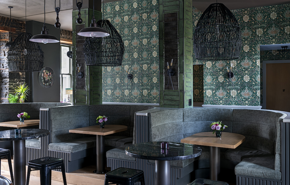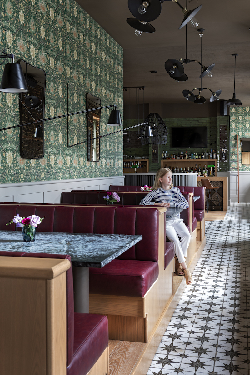 The design of this bar can be seen as a life retrospective of Designer Henrietta Southam. The green and black tiles reflect childhood memories of a Parisian butcher shop.