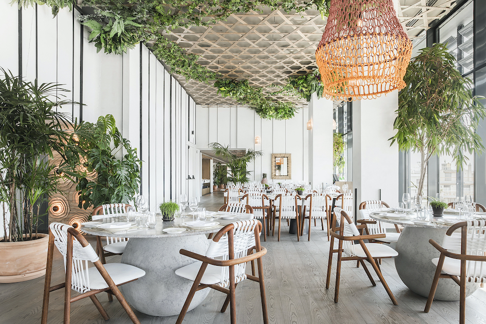 The restaurant-bar Grand by Interni combines masterly gastronomy and design with metropolitan flair. Located on the roof of the Grand Hyatt Athens, it allows stunning views onto the Akropolis and Athens, thanks to the ceiling high windows.