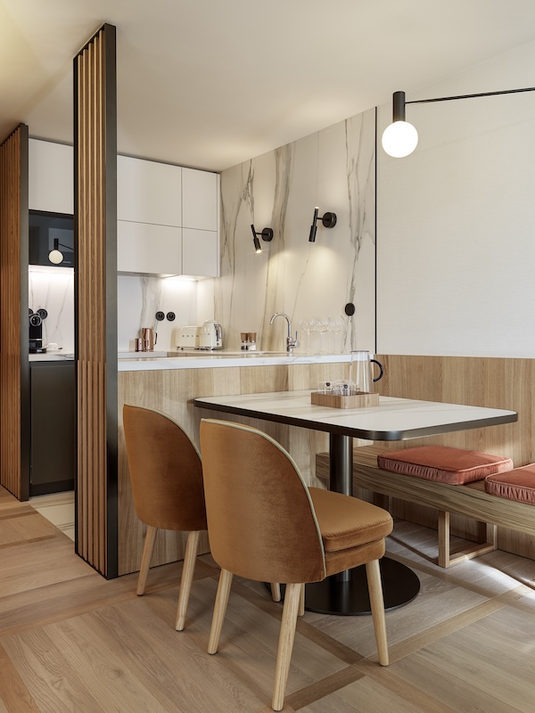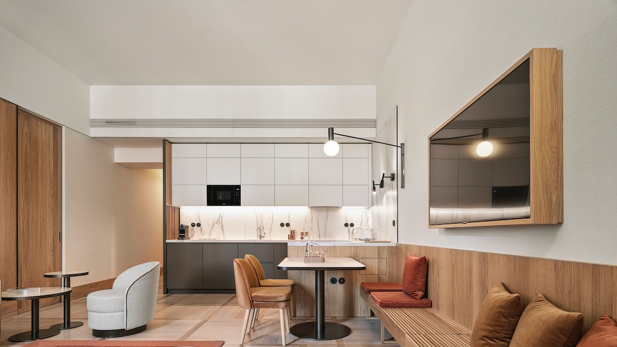 The aparthotel was designed by none other than the world-famous Matteo Thun & Partners studio. The resulting rooms are inviting with a warm but light atmosphere, clear floor plans, natural materials and timeless furniture.