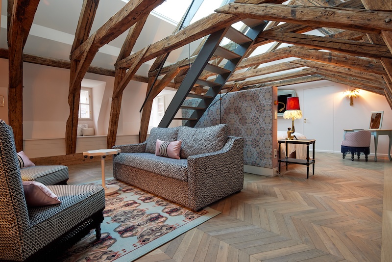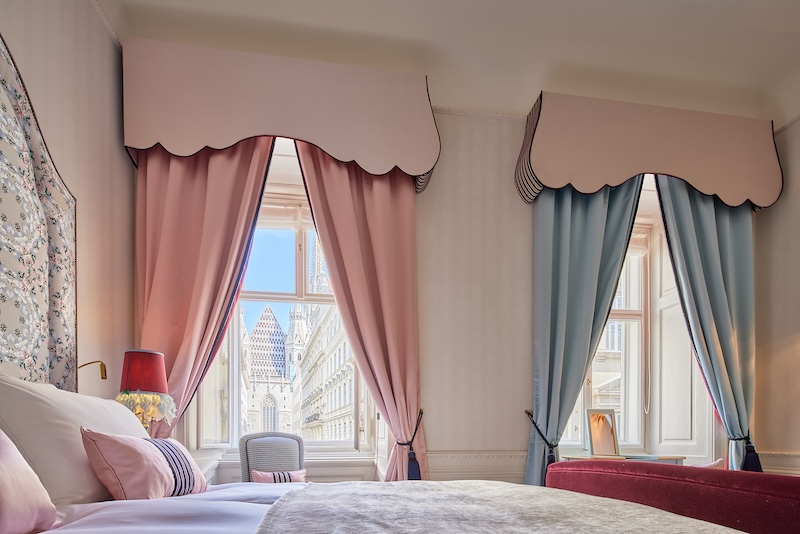 The two-storey Leopold Suite is a very special highlight of this museum-like hospitality mélange. On the small gallery, a free-standing bathtub offers a good overview of these lovingly designed rooms, and the walk-in wardrobe of this special suite probably does something similar. The address at Bauernmarkt promises intimacy in an absolutely central location. Even the view from the four-poster bed proves this: dream views of St. Stephen’s Cathedral and St. Peter’s Church open up.