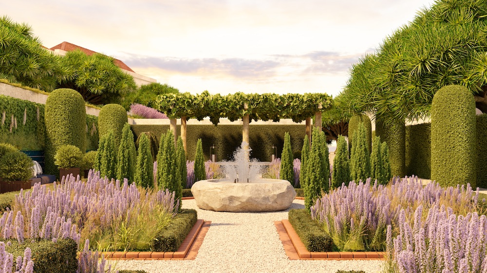 The 2,500 square meter large gardens include the terrace of the O Jardim Wine Bar and a 100 year old dragon tree