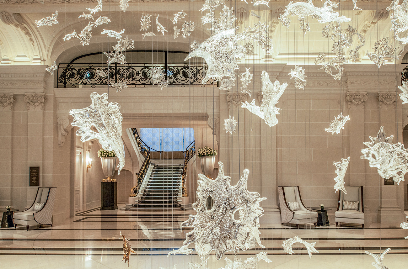 Hong Kong’s luxury chain brought a spectacular hotel to Paris. Contemporary urban furniture, state-of-the-art technology and the 360° view from the panorama terrace redefine 21st century luxury. The generous lobby with its stucco elements and a chandelier made of 800 crystal glass leaves is another huge attraction.