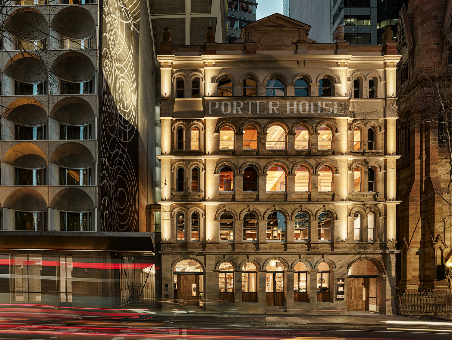 In the heart of Sydney’s Central Business District and only a few steps away from Hyde Park, the hotel is part of a striking architectural ensemble. A landmarked building of 1876, commissioned by the leading tobacco manufacturer Hugh Dixon as na company headquarter and storage, is the center.  Almost 150 years later architect Angelo Candelapas combined the historic building with a super modern tower that almost protects the original Porter House.