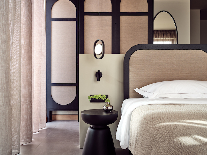 For the interiors, Constantina Tsoutsikou of Studio Lost has strived for a contemporary Cretan authenticity. Much of the furniture comes from local craftsmen. Also nice are the dark metal finishes and sensual details like the leather-wrapped door handles.