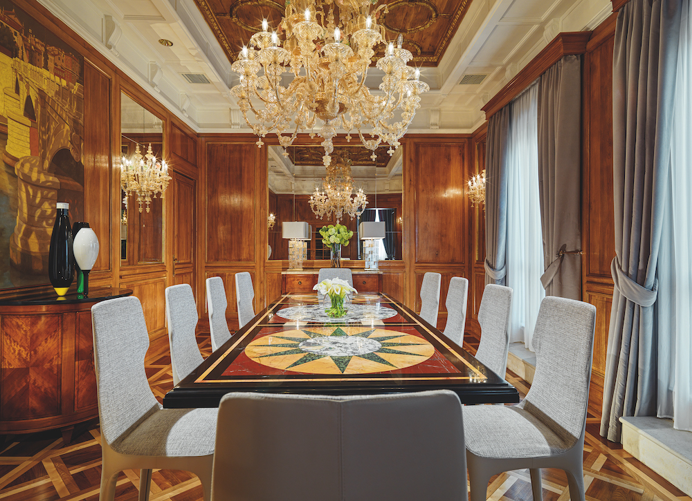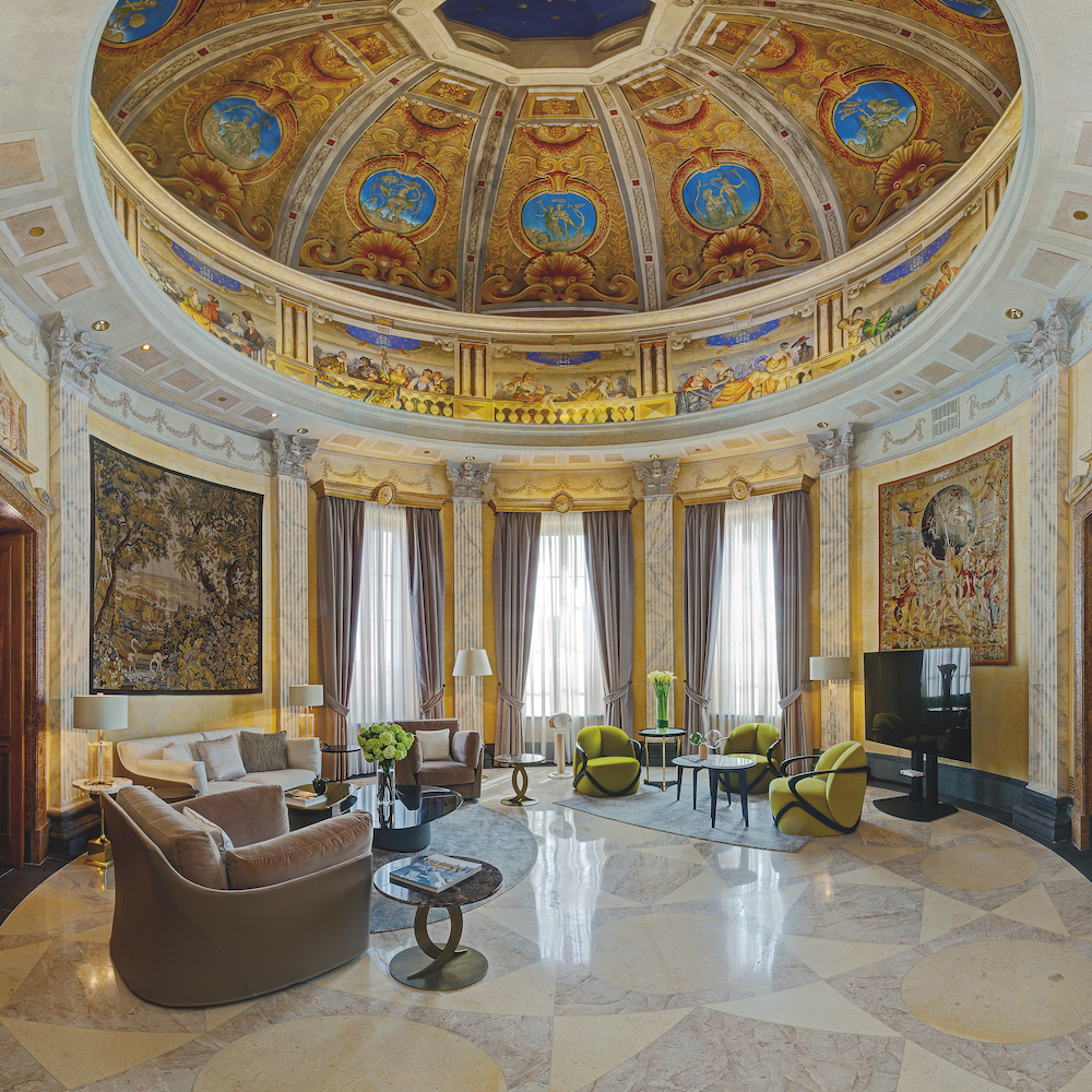 The highlight of the hotel is the Villa La Cupola, one of the greatest, most opulent and certainly most pricy hotel suites worldwide. Spanning over two stories and over 1,100 square meters large, the feudally equipped suite with its splendid dome, its frescos, mosaics and Carrara marble baths reminds more of a Roman palazzo than a hotel.