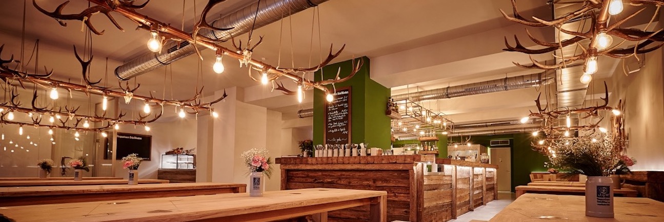 Located in the midst of the Altschwabing district, you can get Augustiner draft beer as well as drinks from a well equipped bar. Below baroque antler lamps, pork roasts with dark beer sauce, tasty char from the Königssee and other seasonal Bavarian delights are served.